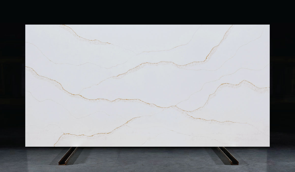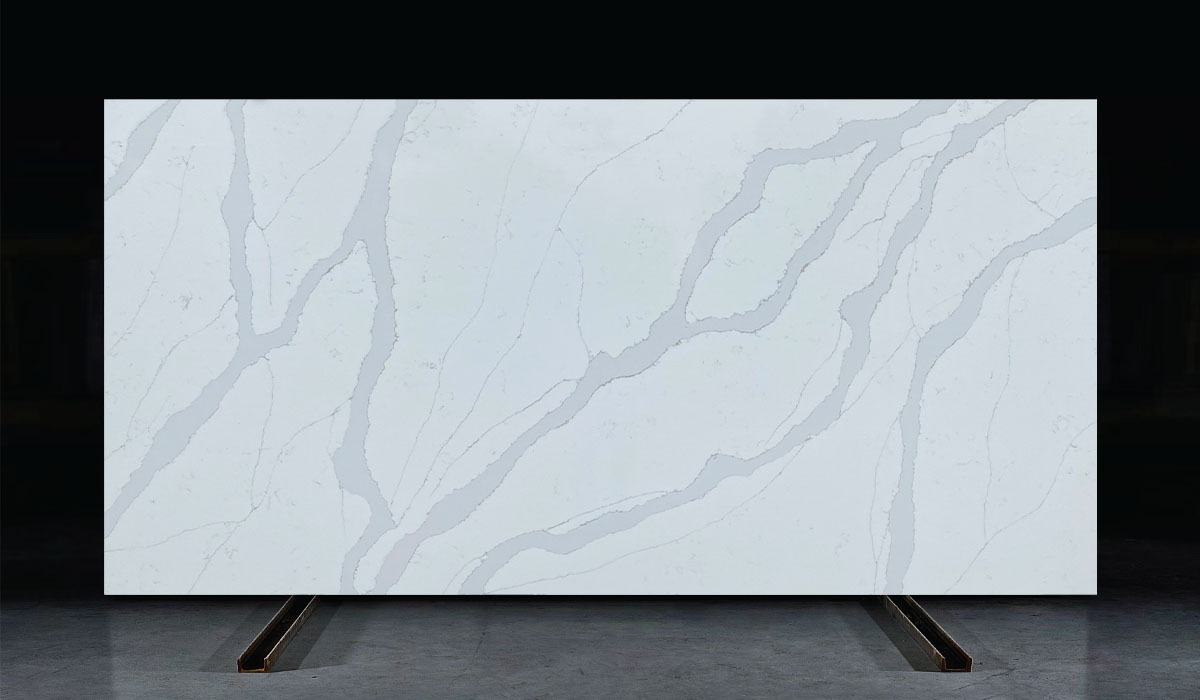 Engineered quartz slabs for countertops, vanities, and feature walls. Consistent color, non-porous surface, and low maintenance.
