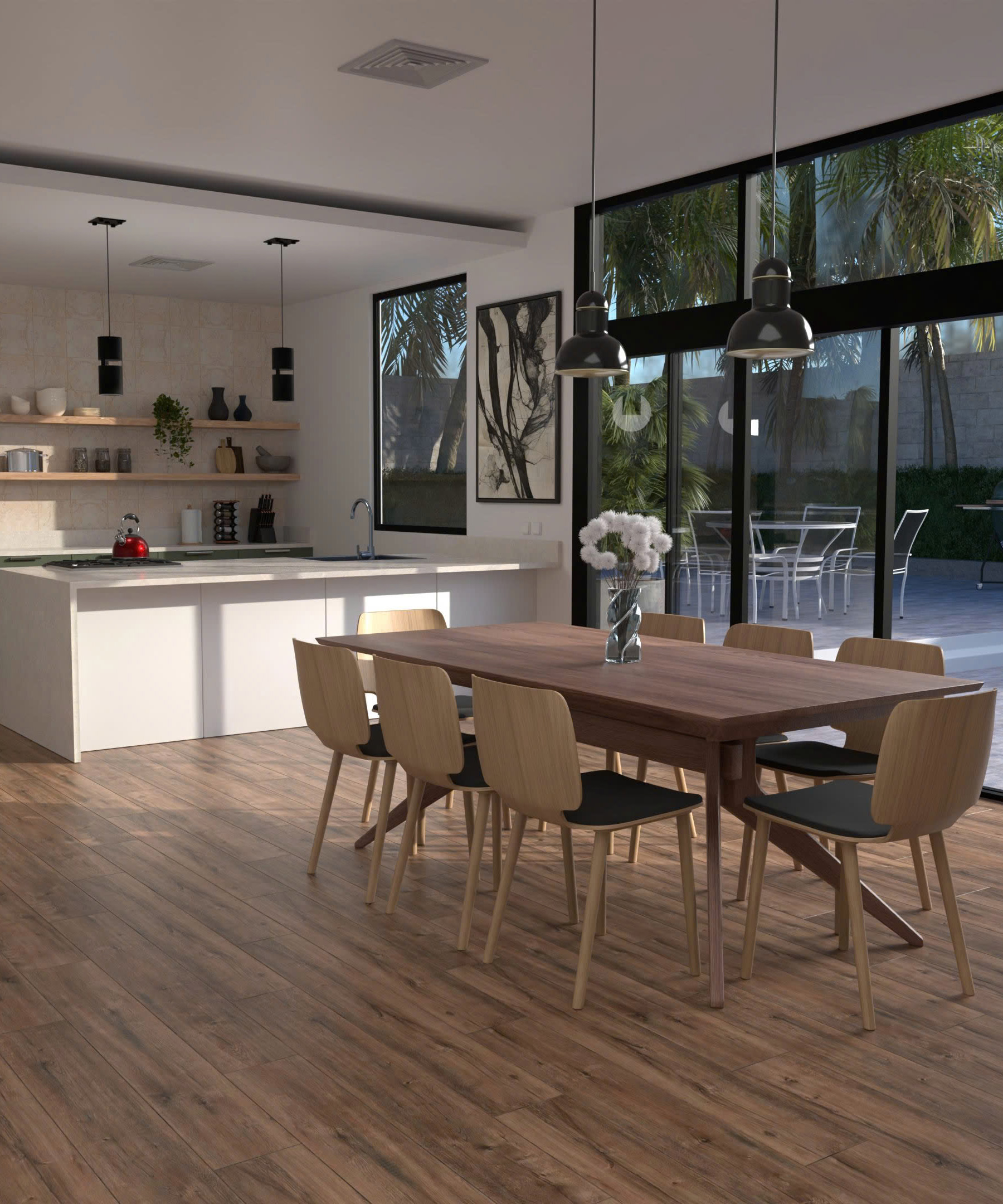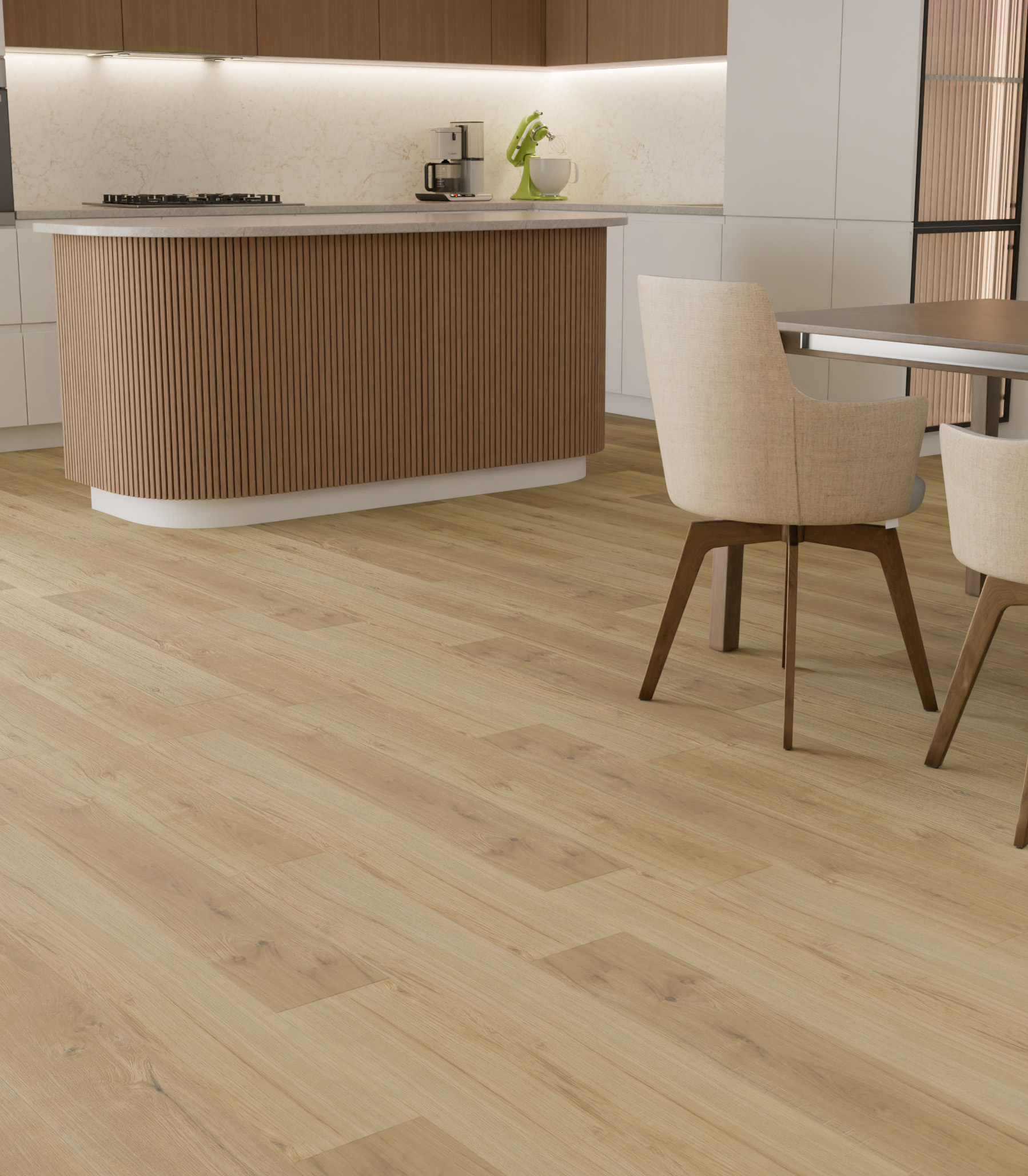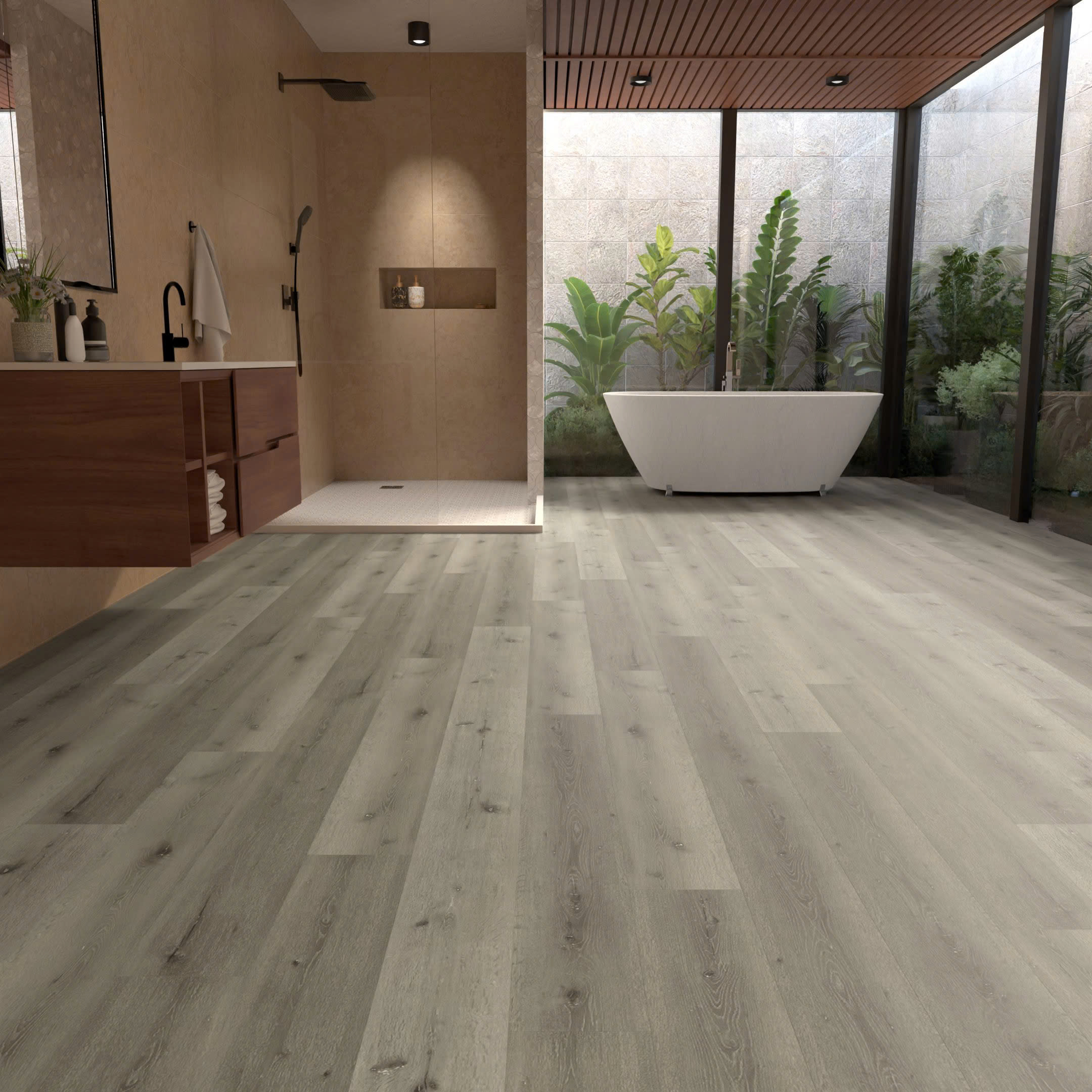 Stone Polymer Composite and Luxury Vinyl Plank flooring. 100% waterproof, scratch-resistant, and easy click-lock installation.